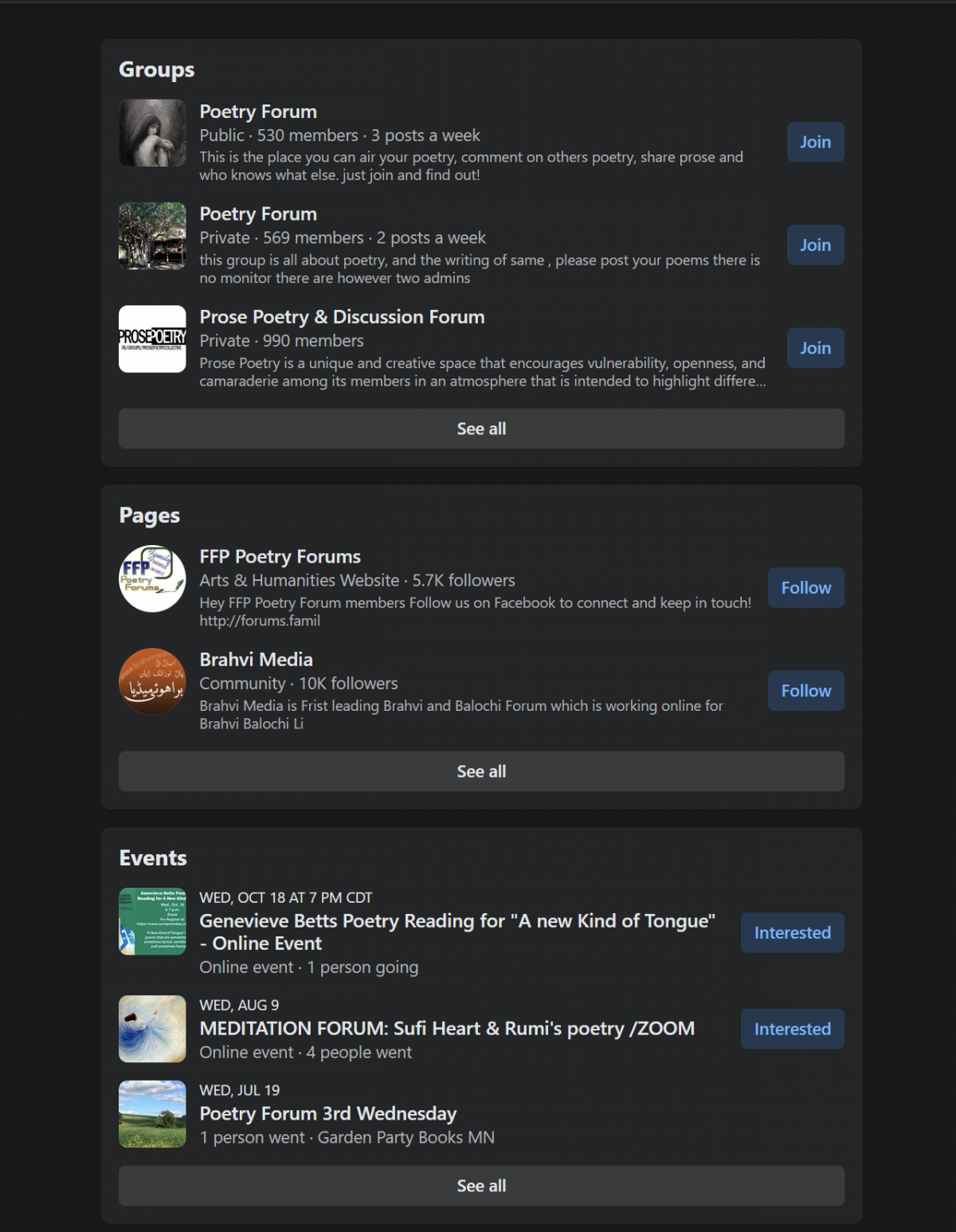 General poetry forums welcome all types of poetry, offering a diverse array of work to explore.
